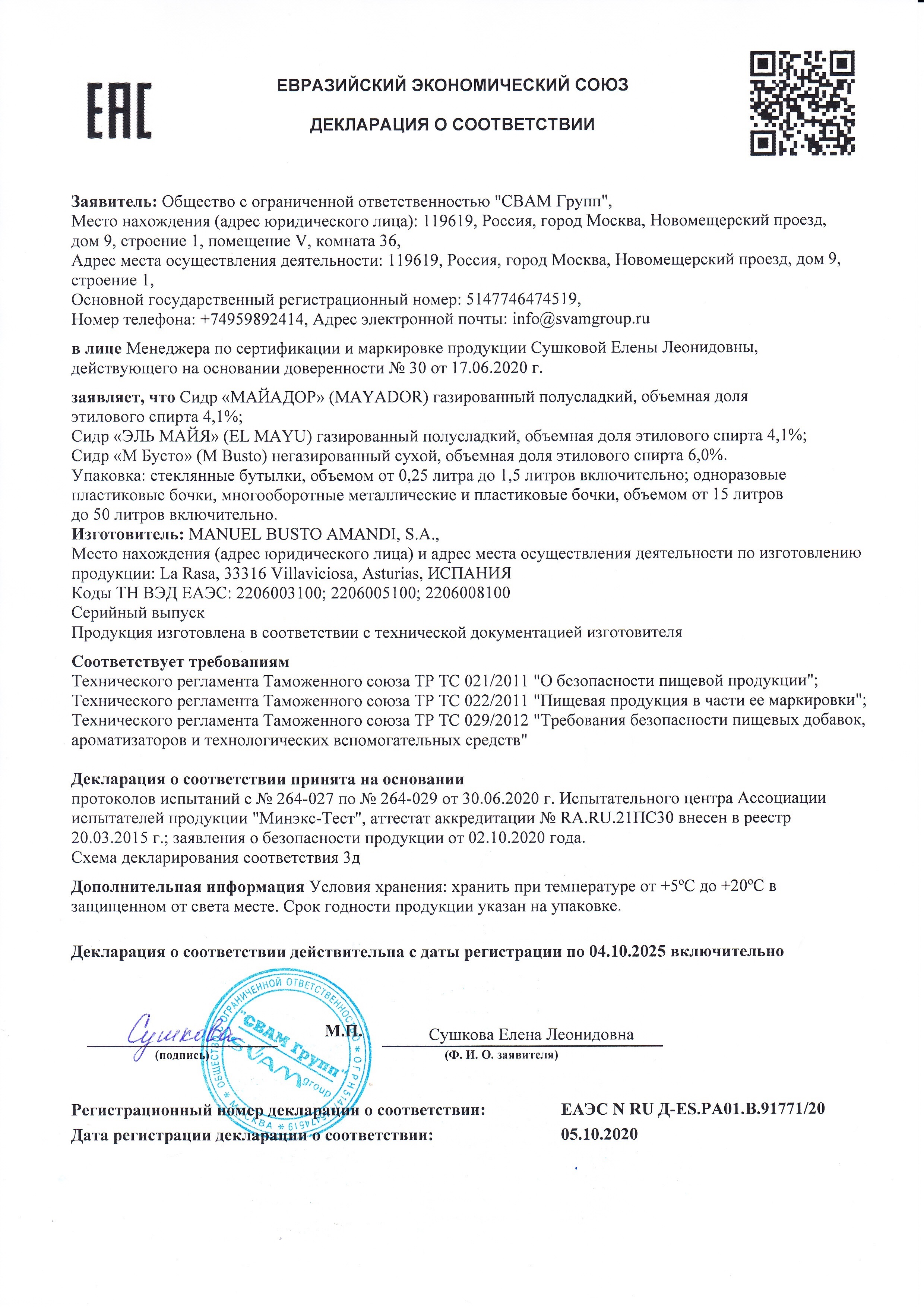 BODEGAS MAYADOR – это семейная компания, которая присутствует на рынке со своей продукцией с 1939 года, первоначально производя и продавая натуральный сидр под торговой маркой M. Busto, по имени ее основателя Мануэля Бусто. Все сидры линейки Mayador производятся из сока прямого отжима диких яблок региона Астурия, которые поставляют на производство более 400 местных фермеров со своих приусадебных участков. В производстве не используются генномодифицированные сорта яблок.