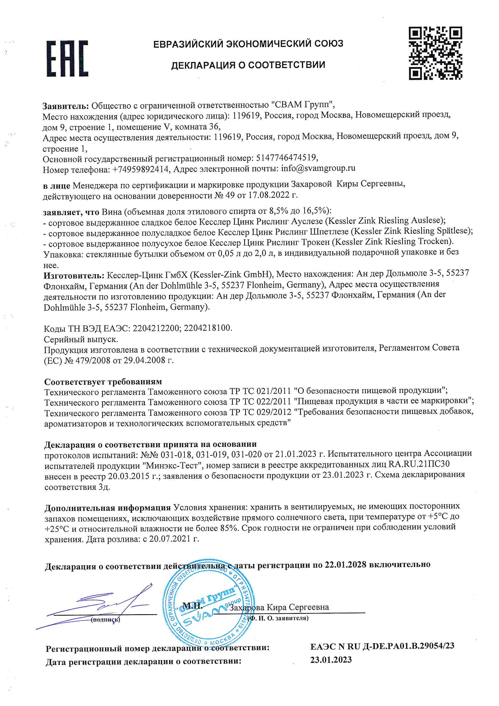KESSLER-ZINK – семейное винодельческое хозяйство из сердца Рейнгессена, которое использует в своем производстве принципы устойчивого развития. Устойчивое развитие означает сознательное сохранение природы для будущих поколений. Для них устойчивое развитие — это не просто пустая фраза, а целостное убеждение: использование в производстве исключительно энергии из растительного масла и солнечного света.